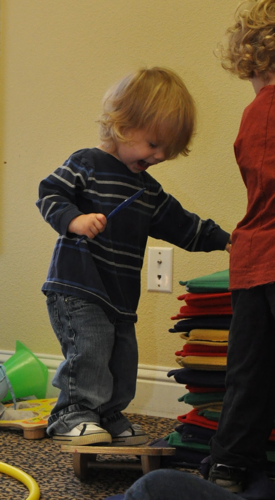Ah, the gross motor room. Hula hoops and balance beams and yoga mats galore!
